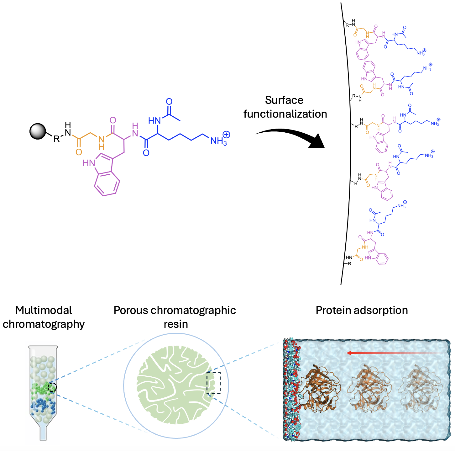 Surface functionalization with peptides enables precise control of interfacial properties such as hydrophobicity and adsorption behavior in applications including chromatography, drug delivery, and tissue engineering. Noncovalent interactions between tethered peptides can create nanoscale surface patterns that significantly influence interfacial properties and are highly sensitive to subtle structural changes in the peptides, making careful peptide design essential. Through molecular dynamics simulations, we aim to understand peptide behavior on surfaces to tune interfacial properties and ultimately control adsorption, particularly in multimodal chromatography.
